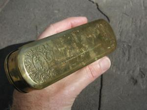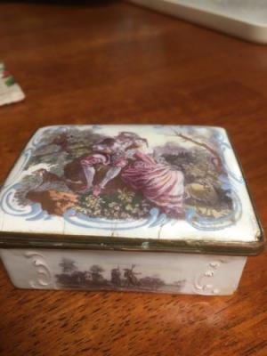 Antique Decorated Victorian Scenes Brass Enamel Porcelain Trinket Box