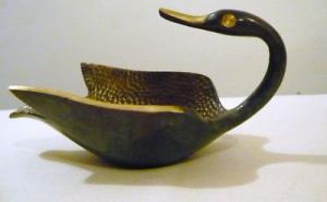 PAL-BELL CO. ISRAEL SWAN/ HERON BIRD BRASS ASHTRAY JUDAICA