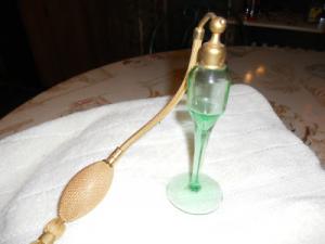 Vintage Deco Green Glass Elegant Tall Footed Perfume Atomizer c.1930