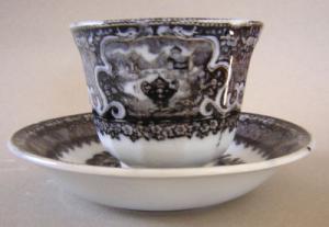 Antique Flow Mulberry Ironstone WASHINGTON VASE Cup/Saucer #2-Wedgwood Excellent