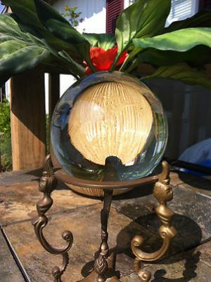 LARGE ANTIQUE CRYSTAL BALL WITH STAND