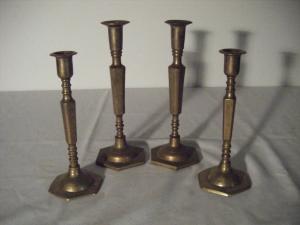 2 Pairs Of Antique Chinese Taoist Brass Candle Sticks China, C1920s.