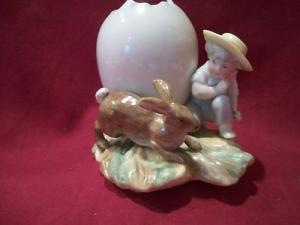 GERMAN KPM PORCELAIN FIGURINE PLAYFUL YOUNG BOY W RABBIT EASTER WHIMSY MINT NR