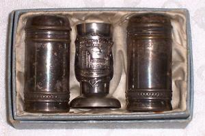 Important Antique & Vintage Metal Masonic Salt, Pepper & Toothpick Holder Set