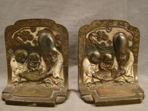 1929 Antique ART DECO Era ORIENTAL Bronzed THE TUTOR Old BUDDHA Teacher BOOKENDS