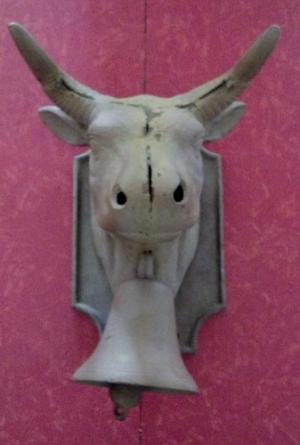 PRIMITIVE CAST IRON BULL DINNER DOOR BELL! Vintage Rustic Look!!