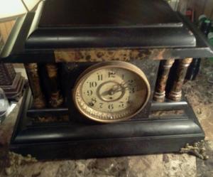 Antique Sessions Black Enamel Wood Mantel Clock: T&S with a signed Ses... Lot 49