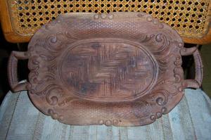 Antique Fancy Carved Bread or Fruit Bowl Tray w/ Handles Fresh Estate Find