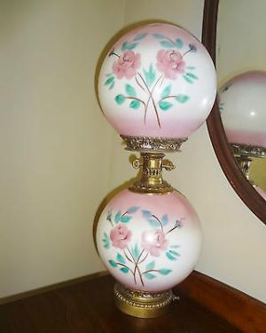Vintage GONE WITH THE WIND DOUBLE BALL Hand Painted HURRICANE LAMP