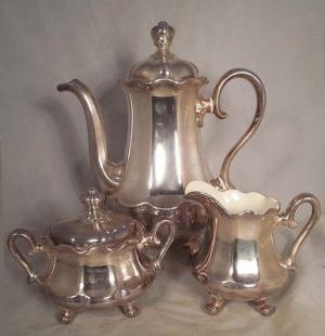 WMF Art Deco Nouveau GERMANY Silver Overlay Porcelain Teaset