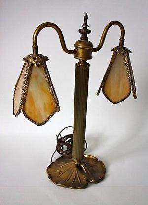 Antique Brass Lawyers/ Bankers Lamp Clamshell Motif Bronze Finish