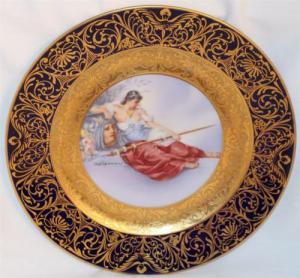 Bavaria Portrait Plate with Melopomene Cobalt Blue Gold Overlay Hand Painted
