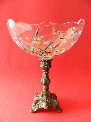 Moser Bohemian Glass Raised Bowl Compote on Bronze Pedestal Stand c1900 Ducks
