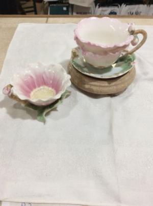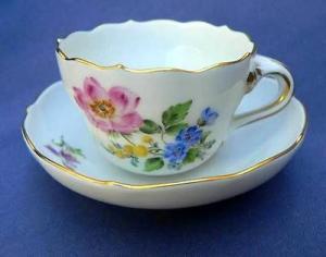 ANTIQUE MEISSEN GERMAN PORCELAIN FLORAL MINI DEMITASSE CUP & SAUCER