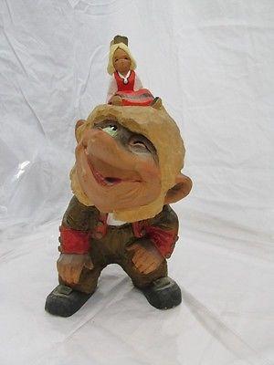 HENNING VINTAGE HAND CARVED NORWEGIAN LONG NOISE TROLL FIGURINE, 10.5"
