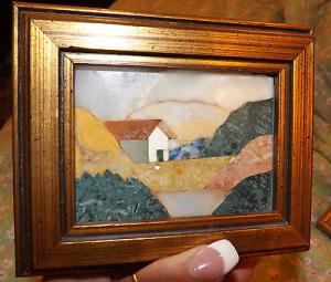 Pietra Dura Italian Stone Florentine Mosaic Landscape frame Miniature signed #1
