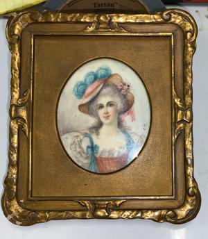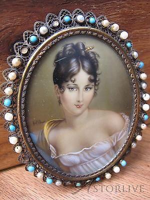 FINE ANTIQUE MINIATURE PORTRAIT PAINTING OF ARISTOCRATIC LADY SIGN