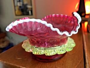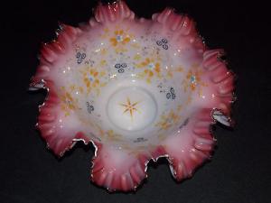 Antique Victorian Brides Bowl Pink Ruffled Edge Hand Painted Interior Design