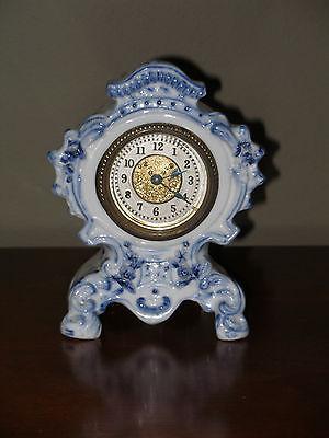 Antique Ansonia Delft Blue & White Clock, Signed & Inscribed in Brass on Back-