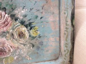 Gorgeous Back Bonus Rose on Handpainted Antique Tole Tray