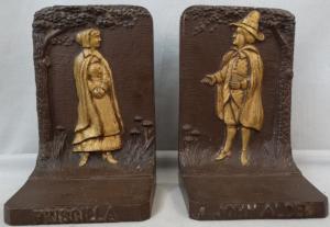 Antique MAYFLOWER PILGRIM Old JOHN ALDEN & PRISCILLA BRADLEY & HUBBARD BOOKENDS