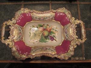 Old Paris Style Hand Painted Painted Porcelain Bowl w/handles and Gilt