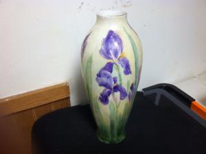 Antique O&EG Royal Austria Hand painted Porcelain Vase Lavender Iris Flowers