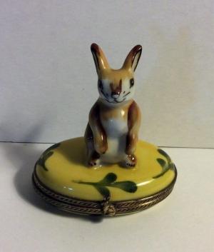 France Limoges Hand Painted Peint Main Signed Bunny Rabbit Yellow Trinket Box