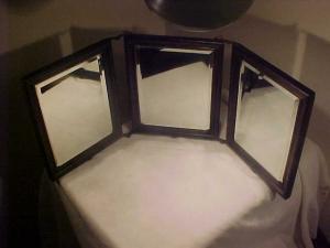 Antique Victorian Tri-Fold Vanity Shaving Beveled Mirror, WOOD FRAME, 1890