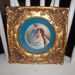 Vintage CA Limoges Portrait Plate in Gold Gilt Wood Frame France-Signed Mongaro