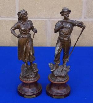 Pair of Antique French Smelter Harvesters Statues Sculptures C.1890''s