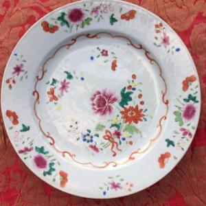ANTIQUE CHINESE 18th C. QIANLONG FAMILLE ROSE PLATE /DISH -PEONY & LOTUS MOTIF