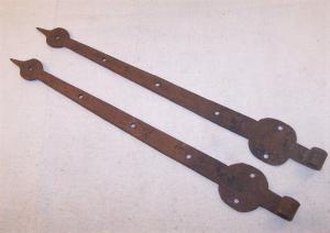 Nice Pair of Antique Wrought Iron Strap Hinges - Exterior or Barn Door - NR