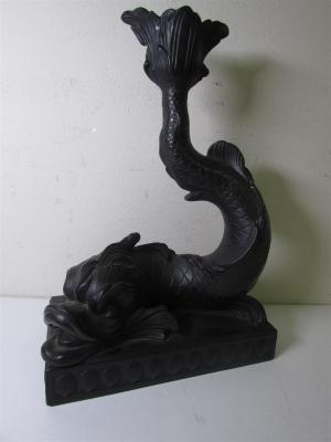 Wedgwood Black Basalt Fish Figurine Statue Candle Holder