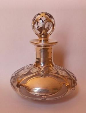 Silver Overlay Clear Glass Unmonogrammed Perfume Bottle Art Nouveau Vntg/Antique