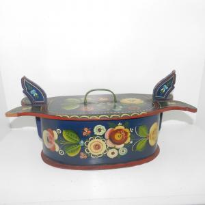 VTG NORWEGIAN TINE WOOD BOX HP FLORAL ROSEMALING FOLK ART PRIMITIVE TOLEWARE