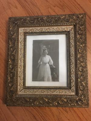 PICTURE OF TODDLER IN AN ANTIQUE WOODEN OVAL FRAME W/CONVEX BUBBLE GLASS