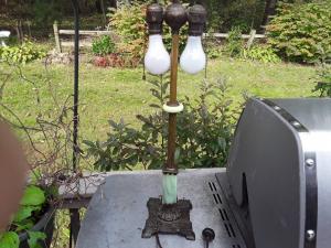 Vintage / Antique Art Deco Jadeite Glass Table Lamp With Adjustale Socket .works