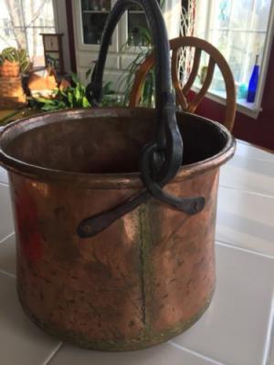 Antique Dovetailed Copper Hearth Cauldron Cooking Pot Iron Handle Very Nice!