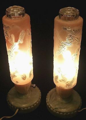Original Celluloid Electolite Deco skyscraper bullet torpedo Lamp set frankart