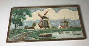 Vintage Delft PorcelainTile Wall Hanging Plaque Windmills Wind Mills Landscape