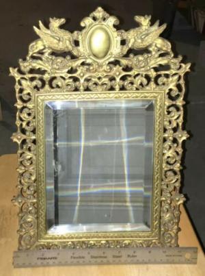 Antique Brass Ornate Framed Beveled Glass Vanity Easel Mirror: Griffins