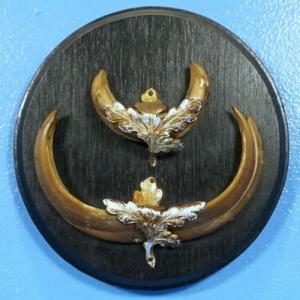 Antique German Black Forest Wood Carved WILD BOAR WALL PLAQUE Razorback Oak Leaf