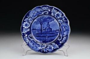 Clews Staffordshire Historical Blue Plate Winter View of Pittsfield Mass.