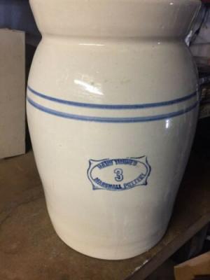 ANTIQUE MARSHALL POTTERY 3- GALLON CREAM BLUE CROCK TEXAS U.S.A.-1
