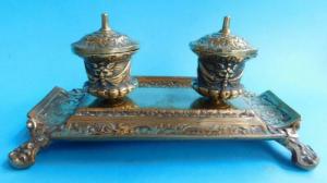 Beautiful Solid Brass Victorian Inkstand Ink Well England 1880s Inkwell