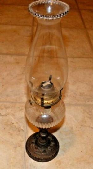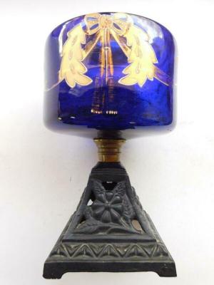 Ant. Pedestal Cast Iron / Brass Oil Lamp