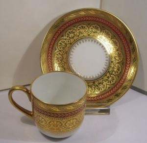 SUPERB OLD ORNATE LIMOGES MAPPIN & WEBB ENCRUSTED GOLD DEMITASSE CUP & SAUCER XC