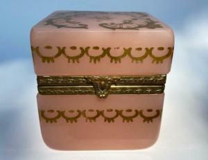 Vintage German Nude Opaline Art Glass Dresser Casket Hinged Ormolu Jewelry Box