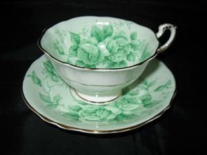 Vintage 1940''s Paragon Cup & Saucer Green Roses English Bone China Teacup